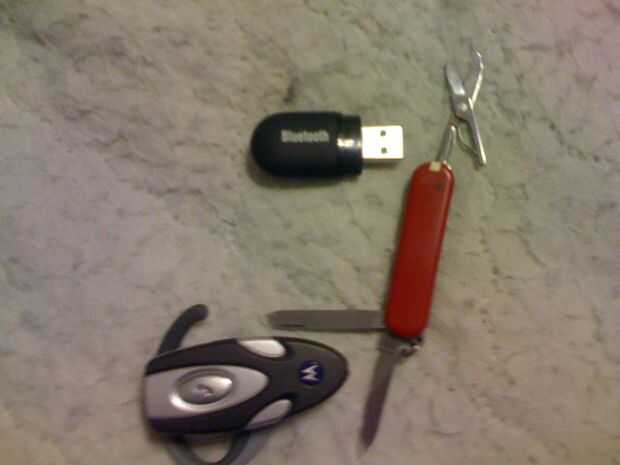 ok ahora es el momento de recoger sus materiales, así que aquí está lo que usted necesita 1. un dispositivo de usb o dongle de bluetooth de la opción 2. un trozo de oreja de bluetooth 3 pistola de pegamento caliente 4. navaja suiza 5. destornillador