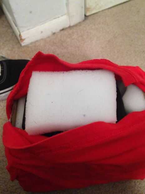 También si desea protección por encima de la cámara, sólo doblar la camiseta encima y añadir un trozo de espuma (no pegamento).