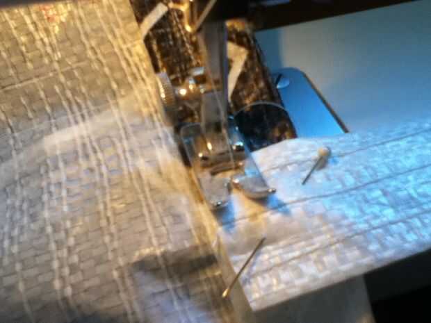 Cubrió los mangos donde pensaba ir, y entonces después de caminar alrededor de probarlo un poco, cosí en. Usé una puntada hacia adelante, entonces un diagonal hacia atrás, luego hacia delante en la parte superior, haciendo un hacia atrás N en la base de cada pieza de la manija.