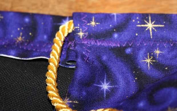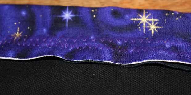 Una vez terminado el canal de lazo, prender juntos los cantos abiertos y ejecutar una puntada hacia abajo desde la parte inferior del canal del lazo hasta la parte inferior de la bolsa.