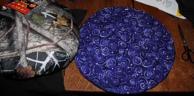 Colocar las telas juntos revés, remonta hacia fuera de un círculo con un diámetro de 17".