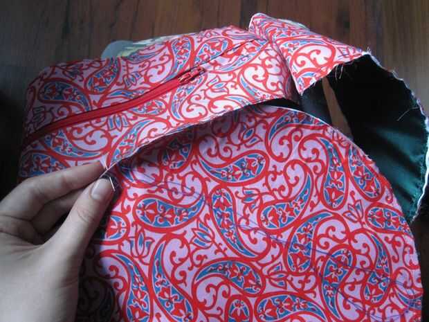-Coser alrededor del borde con el panel plano posterior hacia abajo - creo que esto es más fácil de controlar. Otra vez, con tachuelas y cierre ambos se cubrirá más adelante por la cinta.