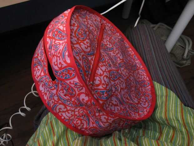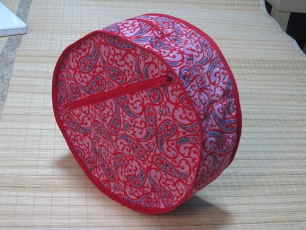 - Y coser la cinta en su lugar! Ir lentamente y con cuidado y saque el virar cuando haya terminado. Ahora tienes un bolso redondo agradable que puede rodar por la habitación.