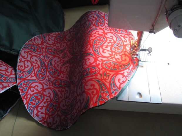 -Virar o prende su guarnición a su tejido exterior correspondiente, luego coser en su lugar. El panel con cremallera ya está hecho, pero todavía necesita hacer el otro círculo, la tira más ancha y los exteriores de la tira de cremallera.