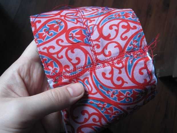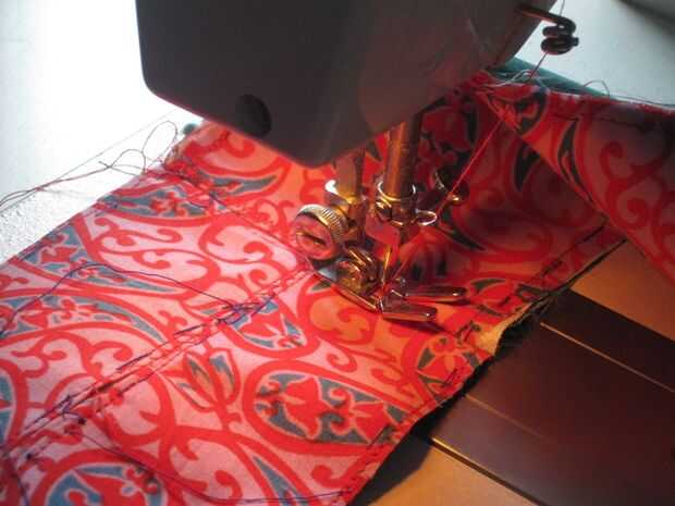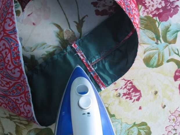 -Coser juntos, recortar los extremos desiguales, puntas de hierro abierto como se muestra y coser con puntada zigzag.