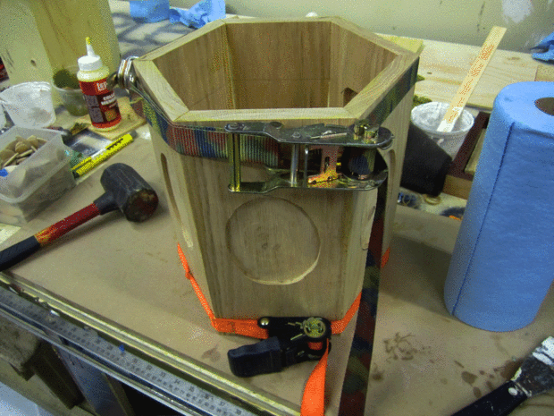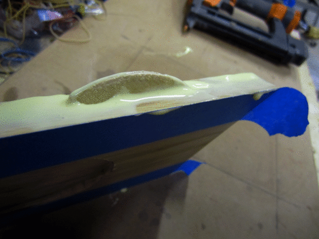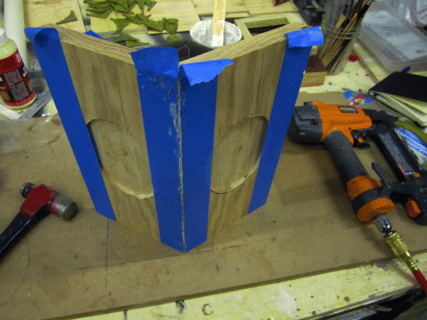 Ahora, leí que durante el pegamento puedes poner cinta de pintor sobre la faz de su proyecto para coger cualquier pegamento que exprime hacia fuera. He decidido a probarlo aquí. Como se puede ver en la foto con las galletas puedo han utilizado demasiado pegamento. Lo que he encontrado es que la cinta en el camino me viendo la costura lo que parecía. Decidí no utilizar el método de la cinta con el resto de las juntas y solo limpian el pegamento como exprimido hacia fuera. Voy a lijar todo el final así que no estoy demasiado preocupado por el pegamento.