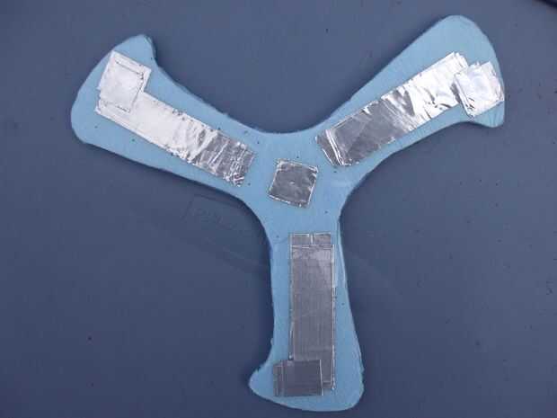 Este boomerang es seguro de usar en la casa porque está hecha de espuma de poliestireno. El boomerang final pesará sólo 0,3 onzas (seis gramos).