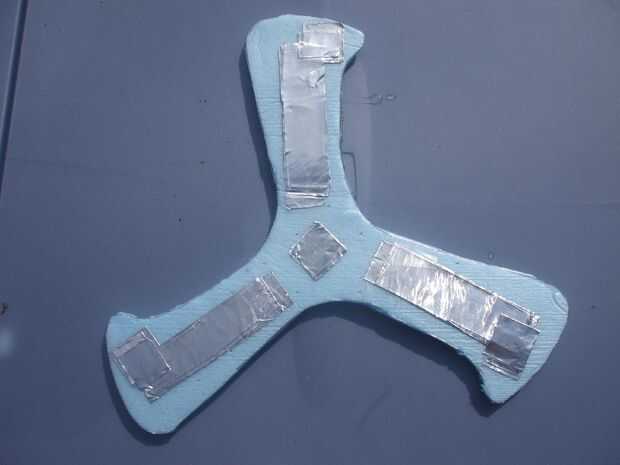 Ahora necesitas pesar el bumerán, si su no 6 gramos (o 0,3 onzas) luego añadir más cinta de la misma manera como el paso 3 hasta obtener el peso deseado. Es muy probable que cuando se pesan primero no será el peso deseado, así no creo que hiciste algo mal.