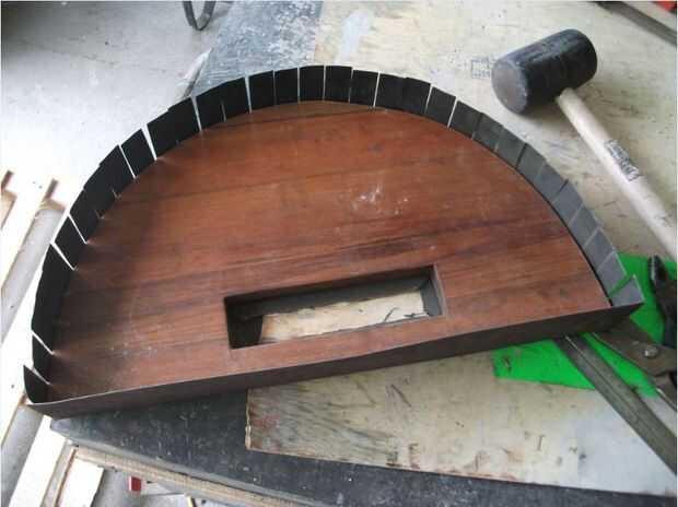 Una vez que están todos doblaron hasta poner la madera en utilizan un mazo de goma y forma la curva hacer todo perfecta y siguiendo el derecho de forma.