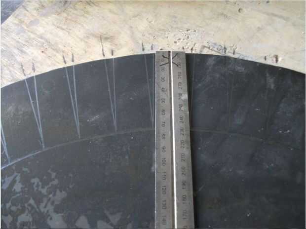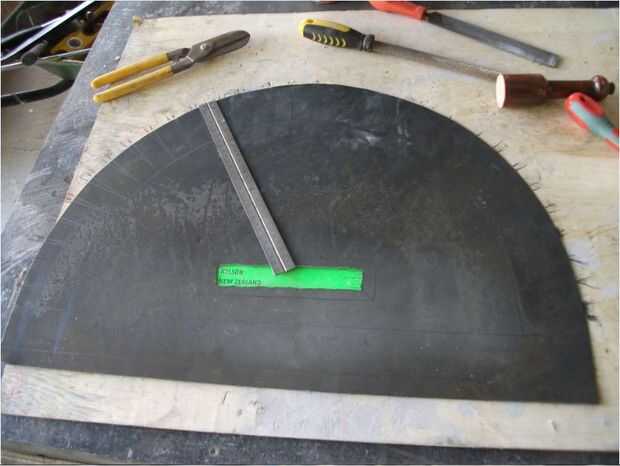Una vez que mide alrededor de 75mm, que he utilizado mi regla como un espaciador para hacer lengüetas para doblar para arriba en el lado curvo, si usted pone su regla en la misma medida a cada lado de la línea de la curva saldrán con la cantidad correcta para cortar para un codo 90deg.