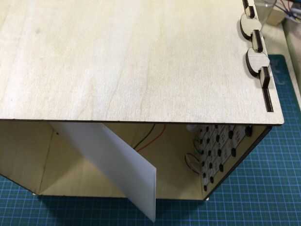 Fija la madera, no olvides poner un Micro USB Cable en el orificio rectangular. (Imagen 1)