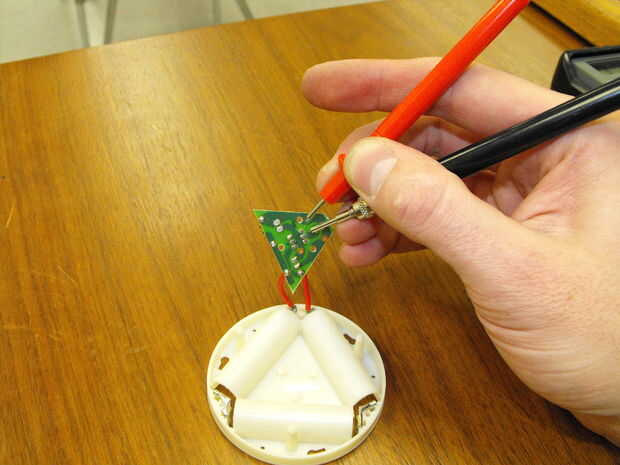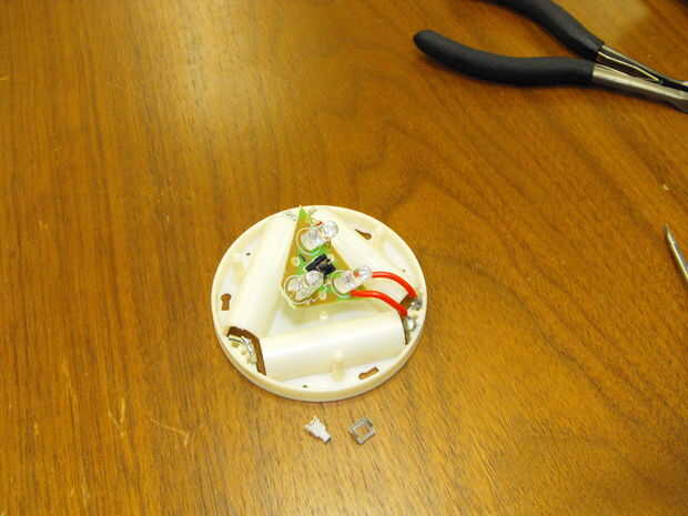 Vuelva a montar el interruptor. Asegúrese de que el muelle y el émbolo volver en los lugares adecuados. Prueba de que el interruptor está normalmente apagado (no conductividad) pero cuando presiona (conductividad). También prueba que la luz se enciende cuando las baterías están en y el interruptor es presionado.
