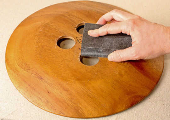Con lija mediana, de la arena alrededor de los bordes del agujero y de cualquier parte que se siente áspero