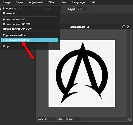 Luego simplemente haga clic en "Imagen" y luego "Flip canvas horizontal"