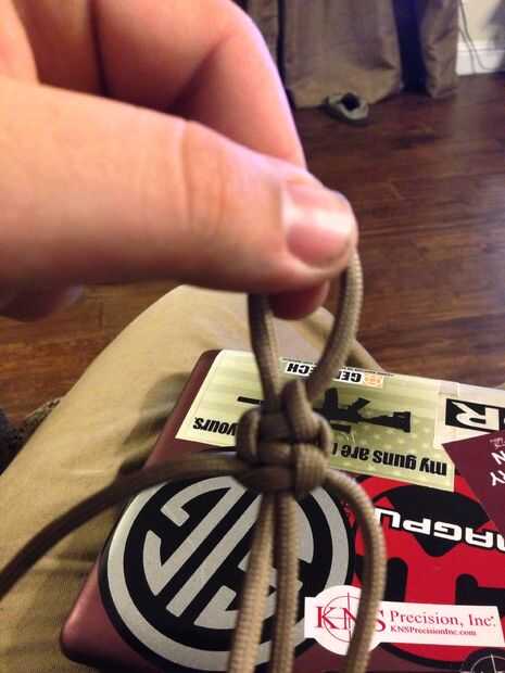 (Aviso que esto es un nudo que se inició en la punta de mi cuchillo de bolsillo, el tejido es el mismo).
