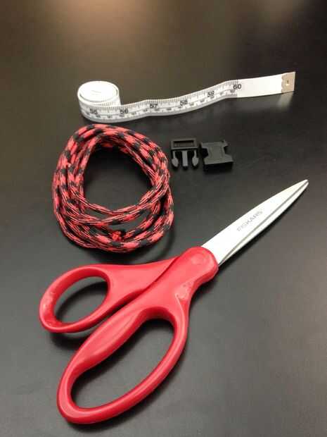 ●You necesitará: hebilla ●10 pies de paracord ●Scissors ●A 5/8 (masculino = bifurcada, mujer = extremo ranurado) ●Measuring cinta ●Lighter (opcional)