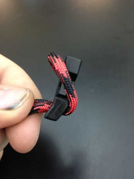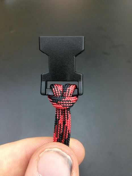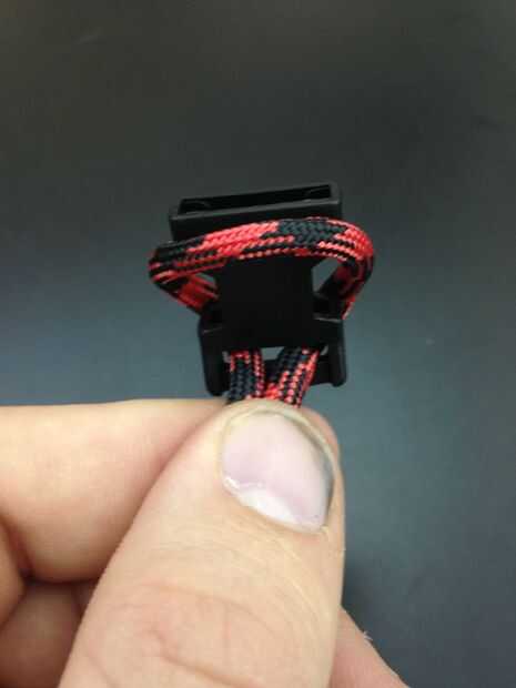 Doble Paracord mitad uniformemente y empuje el extremo del lazo con el extremo hembra del clip.