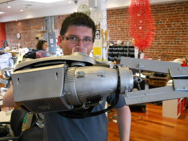 Por lo tanto, tomé un montón de basura basura electrónica y de plástico y empezó este proyecto. Al final, conseguí una pieza interesante que fue la atracción del partido. Es una lástima que no tengo el video cuando subió al andamio de DJs y tocó "Intergaláctico" de Beastie Boys...