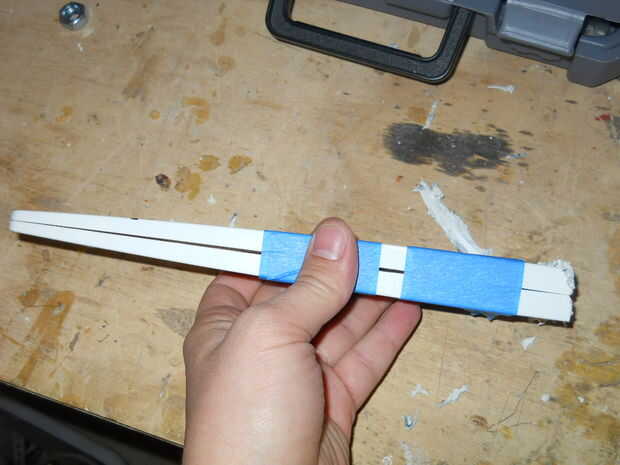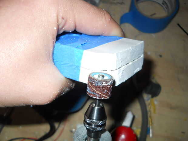 Uno de los bordes gruesos había fileteada y me perforó un agujero. Este será el lugar donde le atribuyo las pinzas en el brazo.
