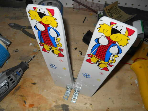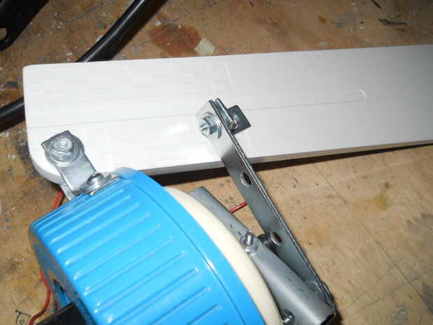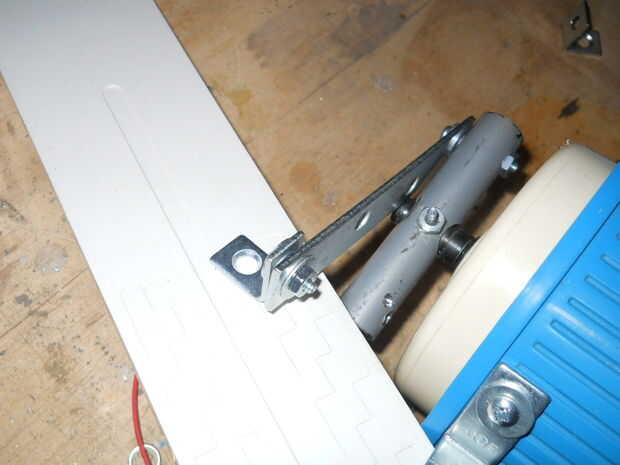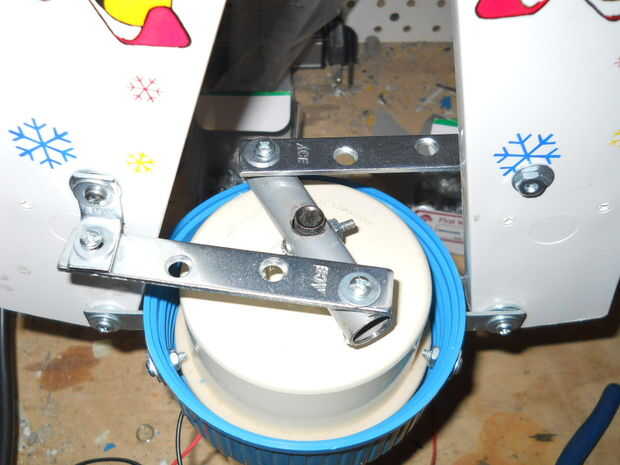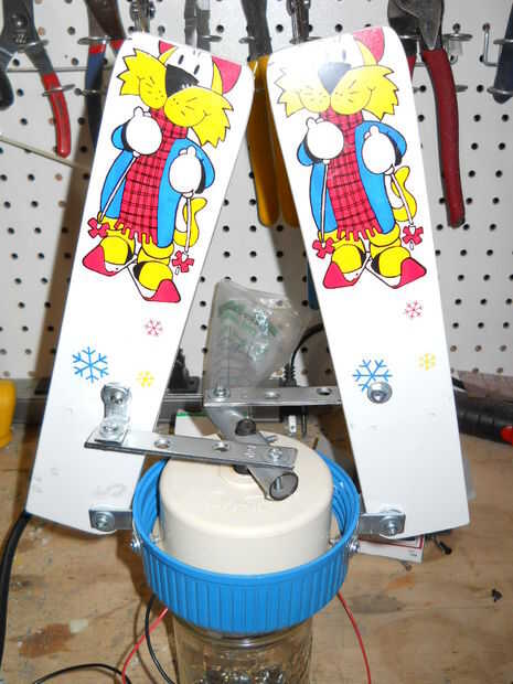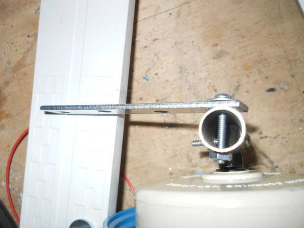 os adjunto las pinzas a cada lado de la tapa del termo con abrazaderas de las esquinas, tornillos, tuercas y arandelas. Entonces conecté éstos al tubo del eje utilizando abrazaderas de reparación. El resultado: dependiendo de la dirección de la rotación de eje de caja de cambios, el tubo se extiende o recoger las llaves de reparación, abriendo o cerrando las pinzas.