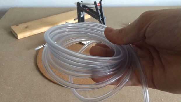 Usé tres longitudes del tubo de 3mm para conectar el brazo a las jeringas de controlador. Llenar el tubo con agua puede ser bastante complicado. Sacó el mango de la jeringa de control y había aspirado agua en el tubo y luego mi dedo sobre la jeringa por lo que el agua se quedaría en la línea. I luego conectado el tubo en el brazo y luego se coloca el mango en hacia la otra jeringa.