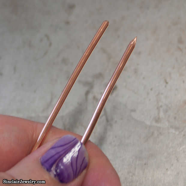 Imagen 1: Comience con su pedazo de 8 pulgadas de alambre y suavemente, suavizar los bordes afilados en los extremos. Utilice el archivo * para desprender los pedacitos realmente desagradables y suavizar con su lija sponge.* *
