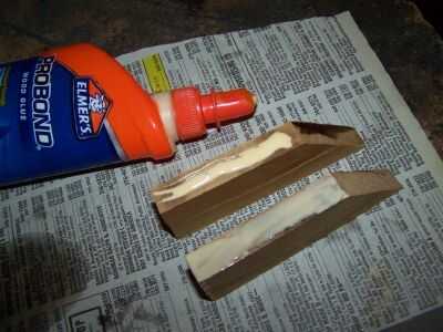 Untar pegamento de madera en el frente a los bordes de los trozos de madera.