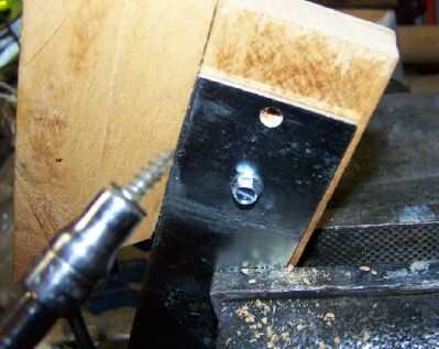 Cuando el pegamento esté seco, presione la pieza de acero contra el borde levantado. Abrazadera de acero a la madera para que no se mueva mientras taladrar y fijar el acero a la madera con tornillos.