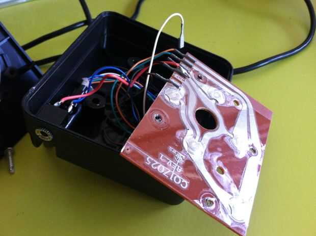 La soldadura de un largo alambre eso (es azul en mi joystick). Soldar otro cable largo al suelo (negro en la mía).
