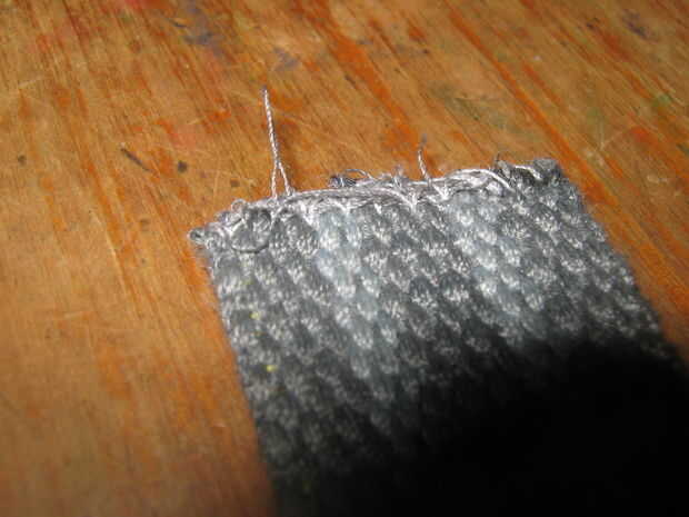 Una puntada de zig-zag rápido en los extremos un par de veces les dejará desentrañar. Todas las piezas se coloca sobre el anillo antes de hacer esto por lo que no necesitan hacer ahora.