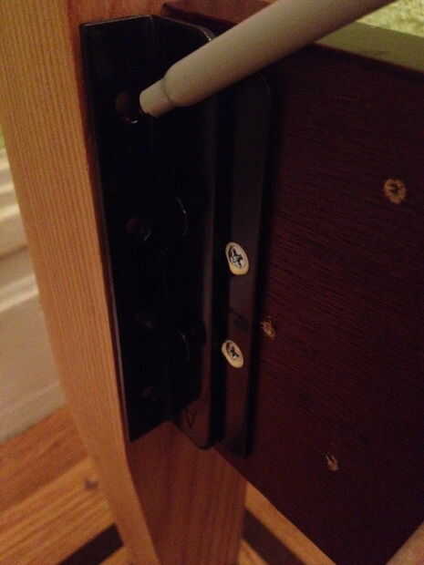 Hay muchos optins soporte y todo instalar un poco diferente. Elegí estos porque están desmontados fácilmente y no requieren cincelado muescas en mi cabecera. Aquí está una foto de mi configuración. Me puse pegamento de madera mis tornillos por lo que son menos propensos a aflojarse con el tiempo.