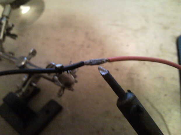 Corte una longitud agradable cables del tamaño Normal basura fuente de alimentación, existen algunas maneras diferentes para soldar los alambres juntos prefiero para tratar de mantener el plano recto hace un mucho mejor trabajo bien terminada.