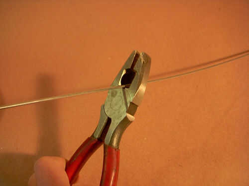 La longitud de acero inoxidable de alambre le a cortar (aproximadamente 14 o 15) y abrigarse con cable o conducto de cinta en un extremo. Esto será el final de que pegarse en las rocas. ¿Hace sentido?