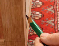 Si esto sucede, marque la esquina con un lápiz donde se levanta orgullosa, Foto 13. Retire el cajón y la parte posterior del avión el frente del cajón a las líneas de lápiz. Si has cuidado que el frontal era plano, cualquier ajuste que tiene que hacer será sólo menor, como lo fue en mi caso.