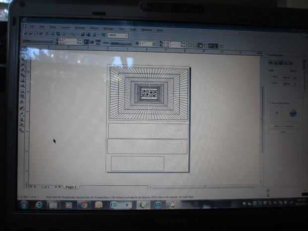 Hice simples rectángulos de la parte superior y los 4 lados. Tengo el programa de arte del clip así que miré en los archivos de "fronteras" y encontré 2 diseños combinados. Uno para un diseño general y otro para el centro. En realidad ese centro es un diseño de esquina que duplicar y luego movido de un tirón hasta que me ha gustado la forma en que veía.