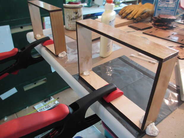 pegué los lados de las cajas con pegamento de madera con abrazaderas y un poco de masilla para mantenerlos rectos.