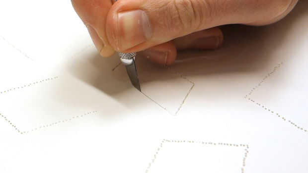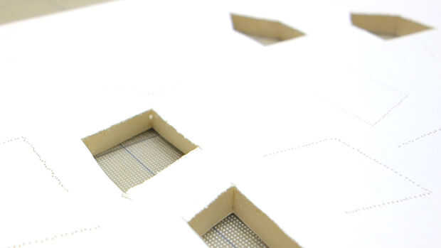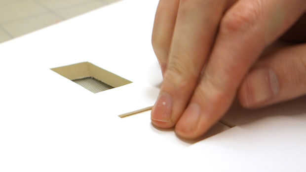 Ahora usted debe tener una pieza de cartón pluma había plagado de agujeros que muestra donde van las puertas. Agarra su cuchillo favorito y empezar a cortar todos los agujeros. Vas a tener que imaginar donde la cuarta línea de las puertas de ir y cortar por consiguiente, pero que no debería ser demasiado difícil.