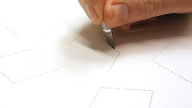 Si usted tiene necesidad de otra capa de cartón pluma fácilmente puede transferir los agujeros en la otra hoja con un bolígrafo, una vez que está cortadas hacia fuera y corte más agujeros en la otra hoja. Unir estas hojas para un calendario más grueso.
