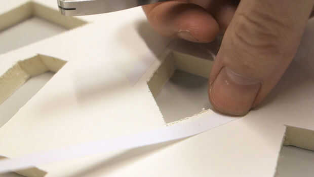 Una vez que se ha eliminado el respaldo con cuidado pueden establecer la impresión sobre el cartón pluma. Asegúrese de que la orientación y la ubicación es como cerca de perfecto, usted puede conseguir, ya mejorará el resultado final. Me parece lo más fácil es emparejar encima de un borde y tipo de propagar en la cinta.