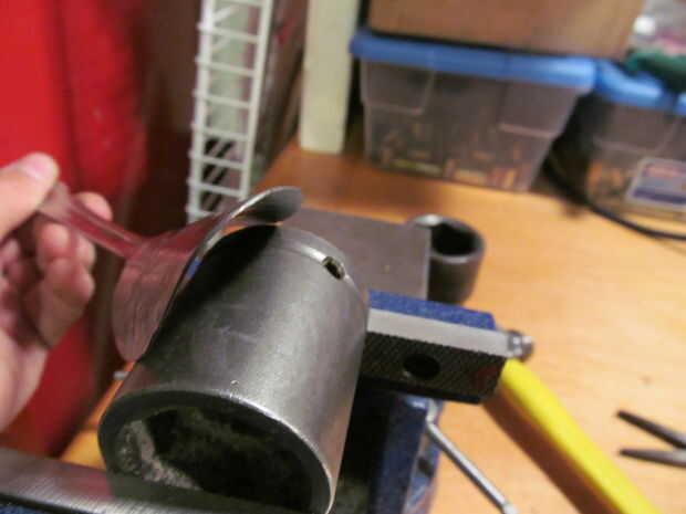 Coloque la cuchara sobre el zócalo y martillo los lados hacia abajo para que cumplan con la curva de la toma.
