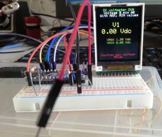 red en el pin A0 que divide por 10.195 y un voltaje de referencia de 5.0v.