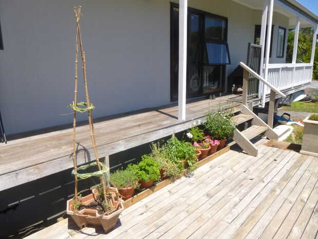 * Estamos también usando nuestra ducha y baño de agua para el riego de un jardín de "biomasa de compost" (consuelda, caña de azúcar, jengibre culinario, etc.).