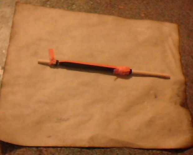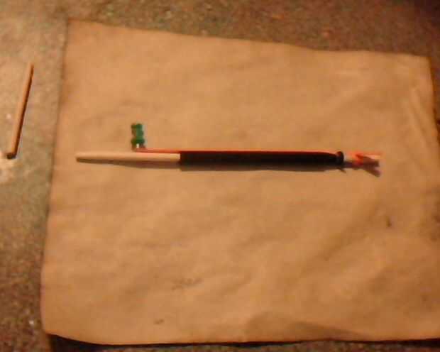 Ahora, para terminar su cañón bastante por lo que puede ser utilizado, pega el final de la primera banda de goma por la parte suelta de la segunda y envuelva la segunda banda de caucho alrededor del extremo hasta que no se puede.