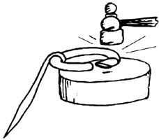 Con el perno en el anillo de cobre, ampliar los extremos de los anillos de cobre por martilleo en frío hasta que el perno no puede escapar del broche. La carpintería ya está terminada, aunque puede ayudar un poco de pulido final.