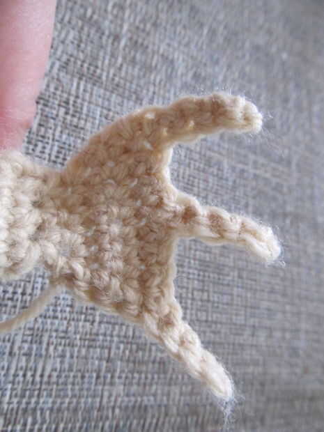 * Ch 5, sc en segundo ch de gancho y próximo 3 ch (1 dedo es hecho)