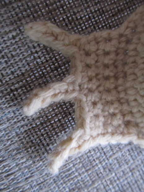Ahora sc hacia abajo el borde del pie y a los lazos libres del cuerpo