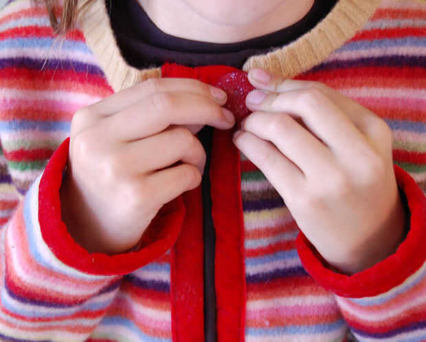 Pero en la oscuridad de suéteres perdidos amanece una gran chaqueta de fieltro para niños. Son fáciles de hacer y es una gran manera de reciclar los suéteres que han cumplido con el enfermo sino de la secadora.