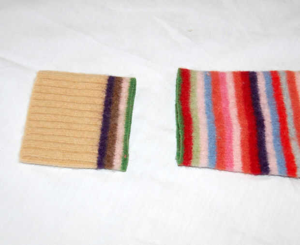 En este punto usted puede cortar las mangas a la longitud que funcionan mejor para su poco uno. A menudo el suéter del resbalón en el niño (si el niño es útil) y marcar donde debe terminar la manga.