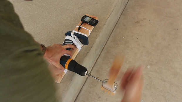 El símbolo de la clavija pequeña en este teléfono aparece en alrededor de 5 voltios y muestra que se está cargando. Decidí arrancar sólo lo suficientemente rápido como para mantener el carga símbolo aparecido, para reducir el riesgo de sobre voltaje. Mi taladro, velocidad de arranque de 100 RPM rindió unos 5 voltios DC.