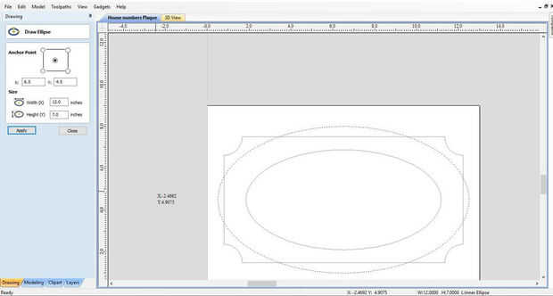 Primero dibujar una elipse 9 "x 4,5", luego agregué un rectángulo 11 "x 6".